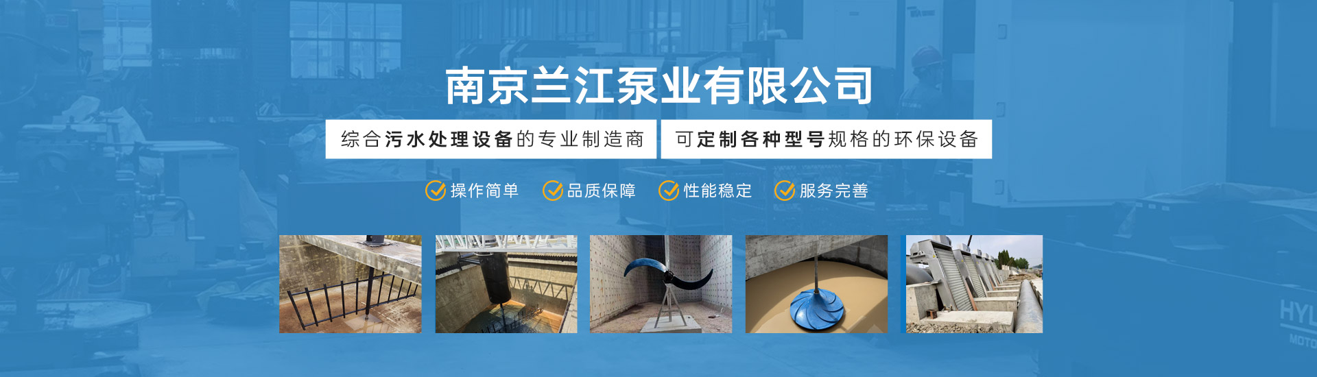 南京蘭江泵業(yè)有限公司致力于污水處理設(shè)備的設(shè)計與研發(fā),生產(chǎn)、銷售與一體的專業(yè)制造商。公司座落于南京北郊、寧通高速旁,風(fēng)景怡人的江北新區(qū),六合區(qū)橫梁街道新禹路18號。公司主導(dǎo)產(chǎn)品有:混合攪拌系列:QJB潛水攪拌機、FQJB型浮筒攪拌機.潛水推流器.立式環(huán)流攪拌機.雙曲面攪拌機.漿式(框式)攪拌機。潛水曝氣系列:射流曝氣機、離心曝氣機、QFB型浮筒曝氣機.浮筒攪拌曝氣機、深水曝氣機。攔污輸送系列:機械格柵、無軸螺旋輸送機、螺旋壓榨機、沉砂池除砂機、砂水分離器。刮吸泥機系列:周邊傳動、中心傳動、行車式、虹吸式等刮吸泥機、潷水器、閘門、地埋式污水處理設(shè)備。潛水泵系列:AS、AV、WQ,AF型潛污泵,QJB-W型污泥回流泵,ZQB...